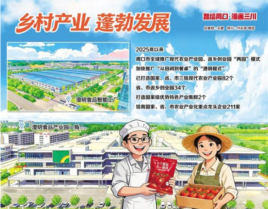 2025年以來(lái),周口市統(tǒng)籌發(fā)展農(nóng)產(chǎn)品初加工、精深加工和綜合利用加工,全域推廣現(xiàn)代農(nóng)業(yè)產(chǎn)業(yè)園、返鄉(xiāng)創(chuàng)業(yè)園“兩園”模式,加快推廣“從田間到餐桌”的“澄明模式”,不斷提升鄉(xiāng)村產(chǎn)業(yè)發(fā)展質(zhì)效,已打造國(guó)家、省、市三級(jí)現(xiàn)代農(nóng)業(yè)產(chǎn)業(yè)園82個(gè),省、市返鄉(xiāng)創(chuàng)業(yè)園34個(gè),打造國(guó)家級(jí)優(yōu)勢(shì)特色產(chǎn)業(yè)集群2個(gè),培育國(guó)家、省、市農(nóng)業(yè)產(chǎn)業(yè)化重點(diǎn)龍頭企業(yè)211家。