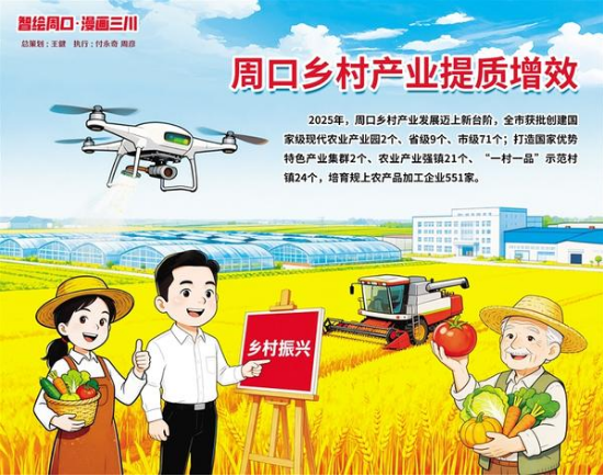 2025年,周口鄉(xiāng)村產(chǎn)業(yè)發(fā)展邁上新臺階,全市獲批創(chuàng)建國家級現(xiàn)代農(nóng)業(yè)產(chǎn)業(yè)園2個、省級9個、市級71個,形成“國家級引領、省級支撐、市縣級補充”的梯次發(fā)展格局。打造國家優(yōu)勢特色產(chǎn)業(yè)集群2個、農(nóng)業(yè)產(chǎn)業(yè)強鎮(zhèn)21個、“一村一品”示范村鎮(zhèn)24個,培育規(guī)上農(nóng)產(chǎn)品加工企業(yè)551家,形成以益海糧油、金丹乳酸、雪榮面粉為龍頭的糧食加工產(chǎn)業(yè)集群。