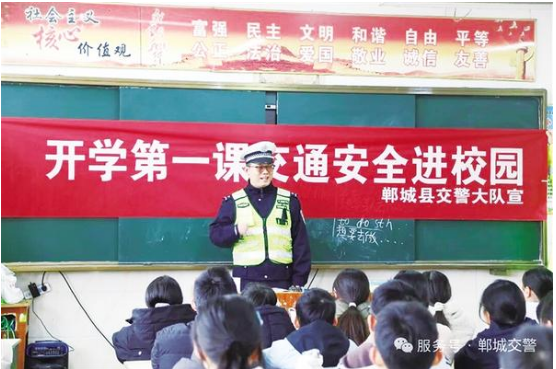 3月5日,民警為師生講解交通安全常識。當日,鄲城縣公安局交通管理大隊宣傳小分隊走進轄區(qū)第三實驗小學,為全校師生送上了一堂生動有趣的交通安全“開學第一課”,切實增強學生的交通安全意識和自我防護能力,為校園周邊道路交通安全筑牢防線。