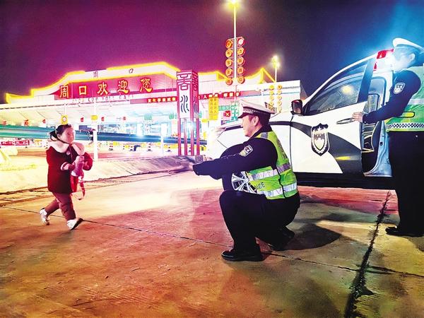 萬(wàn)家團(tuán)圓共慶佳節(jié),警燈閃爍守護(hù)平安。2月16日除夕之夜,在寧洛高速公路周口段巡邏任務(wù)結(jié)束之際,周口市公安局高速公路交通警察支隊(duì)一隊(duì)民警趙軒,迎來(lái)了前來(lái)探望拜年的女兒。