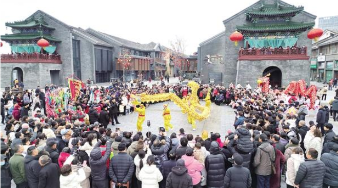 3月2日下午,周口關(guān)帝廟文化廣場(chǎng)上龍飛獅舞,迎接元宵節(jié)的到來(lái)。記者 梁照曾 攝影