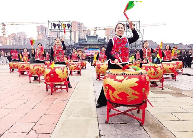 3月2日,周口關(guān)帝廟文化廣場(chǎng)上的紅衣鼓手們奮力擂響巨型紅鼓?;顒?dòng)現(xiàn)場(chǎng)鑼鼓喧天,元宵佳節(jié)氛圍拉滿。記者 王吉城 攝影