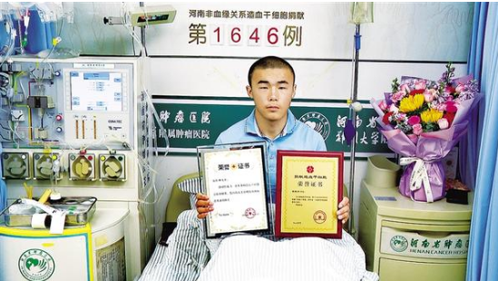 3月10日,來自扶溝縣大新鎮(zhèn)的聶乾坤安靜地躺在河南省腫瘤醫(yī)院采集床上,雙臂連接著采血管,溫?zé)岬难航?jīng)血細(xì)胞分離機(jī)緩緩流淌,最終匯聚成一袋珍貴的“生命火種”——造血干細(xì)胞混懸液。