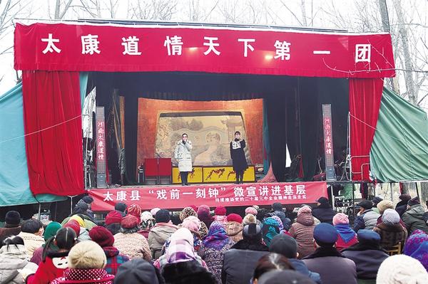 去年以來(lái),太康縣積極開(kāi)展“戲前一刻鐘”微宣講進(jìn)基層活動(dòng),組織文藝工作者向廣大群眾宣傳黨的好政策、傳播黨的“好聲音”,讓黨的創(chuàng)新理論飛入千家萬(wàn)戶。