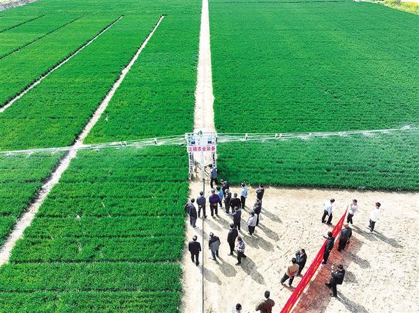 設(shè)施農(nóng)業(yè)看泛區(qū)。近日,黃泛區(qū)農(nóng)場一企業(yè)自主研發(fā)的小型自走式澆地機備受種植大戶關(guān)注。