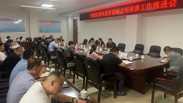 7月28日,開(kāi)發(fā)區(qū)副調(diào)研員王靜主持召開(kāi)移風(fēng)易俗倡樹(shù)文明殯葬工作推進(jìn)會(huì)。