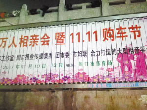 11月12日,由市委組織部、共青團(tuán)周口市委、市婦聯(lián)、周口報(bào)業(yè)傳媒集團(tuán)主辦的周口首屆大型相親會(huì)暨雙11購(gòu)車節(jié)圓滿落幕。……[詳細(xì)]
