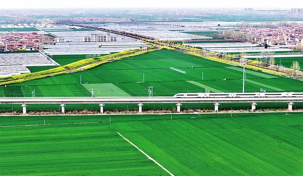 4月11日,一列高鐵列車駛過(guò)扶溝縣境內(nèi)廣袤的麥田。近年來(lái),扶溝縣累計(jì)建成高標(biāo)準(zhǔn)農(nóng)田119.7萬(wàn)畝,疏浚治理河道64公里,維修重建閘涵33座,為實(shí)現(xiàn)穩(wěn)產(chǎn)增收提供了堅(jiān)實(shí)保障。