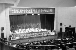 會議指出,前不久發(fā)生的6.18事故教訓異常深刻。近期,市委、市政府多次召開安全生產會議,下發(fā)5次明傳電報,市委書記徐光、市長岳文海都作了重要講話,提出了明確要求。因此,全縣干群必須切實認清形勢,提高認識,切實增強安全生產監(jiān)管工作的危機感、緊迫感、責任感。開展煙花爆竹領域安全生產集中宣傳排查行動是發(fā)展所需。經濟社會發(fā)展要科學發(fā)展,科學發(fā)展首先是安全發(fā)展。抓安全就是抓民生。生命健康是人擁有的最寶貴財富,沒有了生命,一切美好生活,都化為烏有。要對生命心存敬畏,把煙花爆竹安全生產放到一個新的高度上來認識,時刻繃緊煙花爆竹安全生產這根弦。