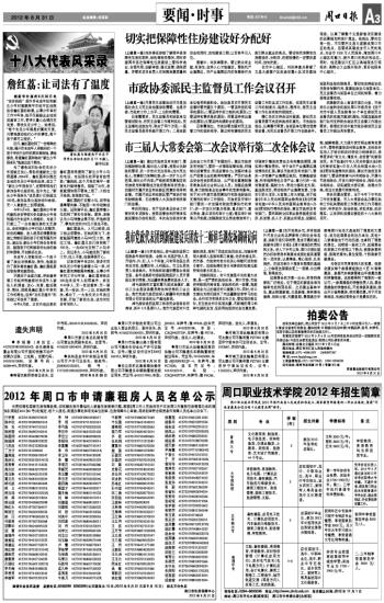 2012年周口市申請(qǐng)廉租房人員名單公示