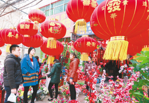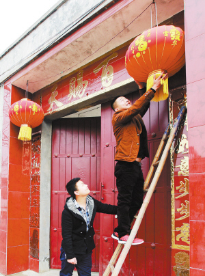 ?、儋N對(duì)聯(lián),掛燈籠,喜迎新春。 (記者 王映 攝)