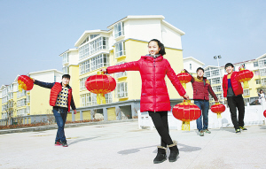 ⑤扶溝縣白潭鎮(zhèn)50多戶農(nóng)民首批喬遷新居,搬進(jìn)了新型農(nóng)村社區(qū)——惠民家園。圖為該社區(qū)的孩子們?cè)谂啪毼乃嚬?jié)目。 (張力友 趙紅巖 攝)