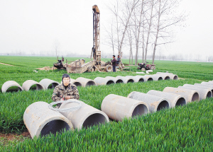 ?、?月23日,扶溝縣大李莊鄉(xiāng)常崗村村民正在田間打井。入春以來,大李莊鄉(xiāng)利用爭取到的資金,大力實(shí)施基本農(nóng)田灌溉工程,切實(shí)解決部分農(nóng)田地塊的澆灌難題,為奪取夏糧豐收奠定扎實(shí)基礎(chǔ)。