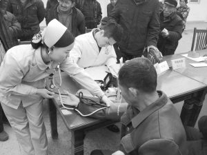 昨日,周口經(jīng)濟(jì)開發(fā)區(qū)組織醫(yī)務(wù)人員為轄區(qū)內(nèi)的五保戶義診。為讓轄區(qū)內(nèi)的五保戶感受到大家庭的溫暖,該區(qū)通過定期開展系列看望慰問活動為老人送去愛心和關(guān)懷。 (記者 沈湛 攝)