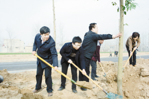 在全區(qū)多個植樹點(diǎn),區(qū)四大班子領(lǐng)導(dǎo)與全區(qū)各單位干部職工加入到植樹護(hù)綠的行動中(如圖)。為確保植樹造林活動有效開展,川匯區(qū)委、區(qū)政府向48家區(qū)直單位下達(dá)了義務(wù)植樹任務(wù)通知書,任務(wù)實(shí)施單位包苗木、包栽植、包成活、包管護(hù)。2015年,川匯區(qū)計劃造林2749畝,森林撫育及改培造林300畝,新建林業(yè)生態(tài)園1處、花卉苗木基地200畝、綠化社區(qū)及林業(yè)生態(tài)示范村9個,打造創(chuàng)模精品線路1條。
