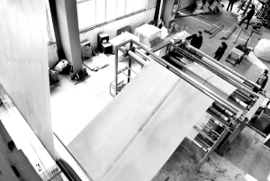 淮陽縣銀豐塑料有限公司流水生產(chǎn)線一瞥。該公司擁有大中型吹塑膜機組40多臺、制袋生產(chǎn)線6條,并擁有完備的塑料制品化驗檢測設(shè)備。生產(chǎn)的農(nóng)用塑料膜等產(chǎn)品暢銷蘇、魯、豫、皖等地,遠銷美國、韓國等國家。(記者 沈湛 攝)