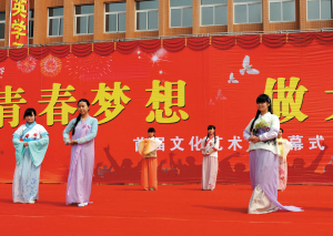 該校把特色教育作為發(fā)展的名片,推出“一班一品一特色”活動。學(xué)校建立以班級為單位的社團(tuán)組織,并細(xì)分為體育類、舞蹈類、樂器類、美術(shù)類四大類別,共70個社團(tuán)。比如:美工社團(tuán)制作漢服進(jìn)行表演,每一次都讓在場的觀眾潸然淚下,為自己是一個漢唐中華子孫而驕傲,為著漢唐服裝而自豪。學(xué)校出版了《求真大課堂》《走在成長的路上》《花季無悔》《中學(xué)生科技創(chuàng)作》《班主任德育思想錄》《國學(xué)之蘊(yùn)》《家和萬事興》《共創(chuàng)一個夢 和韻文昌之家校共建》《“文昌杯”文明我先行 共筑一個夢》主題征文作文選等校本教材。為豐富校園文化生活,學(xué)校邀請中國政法大學(xué)的霍登科,歷史文化學(xué)者王少清,青少年心理教育專家張海選、萬禮彬,周口市中心醫(yī)院婦產(chǎn)科主任楊莉,河南國學(xué)院的施柳貞、王福琪、楊茹梅以及國內(nèi)外優(yōu)秀大學(xué)生對學(xué)生進(jìn)行國學(xué)誦讀和教育、演講比賽、法制教育、夢想目標(biāo)教育、青春期心理和生理教育等活動。在該校首屆“做大成教育 展青春夢想”文化藝術(shù)節(jié)活動中,有一項活動叫珍藏十年“心愿瓶”,當(dāng)滿載學(xué)生夢想的心愿瓶準(zhǔn)備珍藏時,晴天出現(xiàn)了彩虹,讓在場的領(lǐng)導(dǎo)、家長、學(xué)生很驚嘆,說文昌中學(xué)的學(xué)生目標(biāo)遠(yuǎn)大,定有大才出現(xiàn)。這些有意義的活動對廣大未成年人的身心健康起到了很好的促進(jìn)作用。