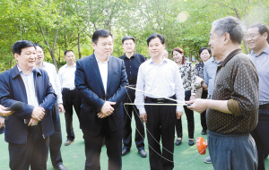 徐光一行又先后深入開發(fā)區(qū)人民廣場、星龍華緣健身場所、融輝城健身活動中心、商水縣夕陽紅健身園、周口市體育中心等地實地察看各項體育健身運動設(shè)施建設(shè)進(jìn)展情況,聽取籌備工作情況匯報,了解場館布展和開幕式準(zhǔn)備情況。看到一件件嶄新的健身運動器材、一塊塊新近完善提升的健身場地,特別是正在進(jìn)行健身運動群眾的一張張笑臉,徐光滿意地點點頭,并來到市民中間,與大家親切交談,和正在健身的市民打乒乓球、試用健身器材,共同分享健身帶來的樂趣。徐光說,我市作為省十二屆“老健會”的承辦方,在時間緊、任務(wù)重、標(biāo)準(zhǔn)高、壓力大的情況下,各相關(guān)單位按照市委、市政府的安排部署,講政治、顧大局、做貢獻(xiàn),做了大量卓有成效的工作,可以說我市的全民健身場所功能得到了完善、形象得到了提升,市民參與健身活動的途徑和選擇更加方便多樣,參與健身的熱情更加高漲,市委對大家的工作是滿意的。但是,我們還要看到,我市的全民健身工作與群眾的需求還存在一定差距,必須進(jìn)一步加大投入力度,建設(shè)好、管理好、使用好相關(guān)體育健身設(shè)施,使之能夠更好地滿足群眾健身需求,服務(wù)百姓生活。