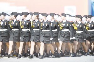 ?、?月9日,在俄羅斯首都莫斯科紅場(chǎng),蘇沃洛夫少年軍校方陣行進(jìn)在閱兵式上。