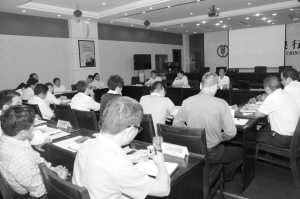 5月14日晚,周口農(nóng)行組織召開黨委中心組學(xué)習(xí)(擴大)會議,集體學(xué)習(xí)《金融互聯(lián)網(wǎng)知識講座》、《黨建知識及上級行黨建工作有關(guān)要求》等內(nèi)容。圖為學(xué)習(xí)現(xiàn)場。(彭濤 攝)