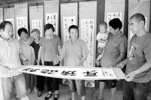 昨日,扶溝縣包屯鎮(zhèn)雁倉村村民在觀看郭合的書法展。據(jù)了解,該村村民郭合癡迷書法,20多年來,他一邊務(wù)農(nóng)一邊堅(jiān)持練字,把書法當(dāng)成了生活中最大的樂趣。