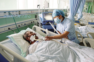 當(dāng)然,護(hù)理工作并非一帆風(fēng)順。眾所周知,ICU收治的都是重癥患者,患者大多數(shù)都有精神障礙,譫妄、昏迷、煩躁不安等狀況很常見,這就需要護(hù)士們充滿耐心和愛心。張衛(wèi)華以實際行動詮釋人間大愛。2014年8月,科室里來了一名Ⅱ級肝性腦病的男性患者,已經(jīng)精神錯亂且不認(rèn)人,行為非常危險。由于該病不能使用鎮(zhèn)靜藥物,當(dāng)責(zé)任護(hù)士靠近患者時,患者拿起床頭柜上的一個玻璃瓶向護(hù)士砸去。作為護(hù)士長的張衛(wèi)華見此情景,臨危不懼,用自己的身軀保護(hù)責(zé)任護(hù)士。只聽見啪的一聲,鮮血順著她的臉頰流了下來,可她還是慢慢走向那名患者,輕聲向他解釋情況以安撫其情緒?;颊叩那榫w漸漸地穩(wěn)定下來,她才去處理傷口,并輕松地說:“只要沒傷著病人就好?!庇幸淮危剖依飦砹艘幻墓W≡旱睦先?,老人的孩子都在外地,得知老人生病住院也沒趕回來照顧,甚至連一句問候都沒有。老人除了要忍受著病痛的折磨,還要忍受對孩子們的思念。張衛(wèi)華見此情景,非常心疼,為安慰老人,上班期間她都會去陪老人聊天,哄老人開心。老人吵著不舒服的時候,張衛(wèi)華用藥緩解,同時耐心安撫老人。晚上老人因為孩子的事情,會像一個小孩兒一樣哭泣不止,張衛(wèi)華心疼地陪在老人身邊,一遍又一遍地安慰說:“別害怕,我在您身邊,我就是您的女兒?!?/P>