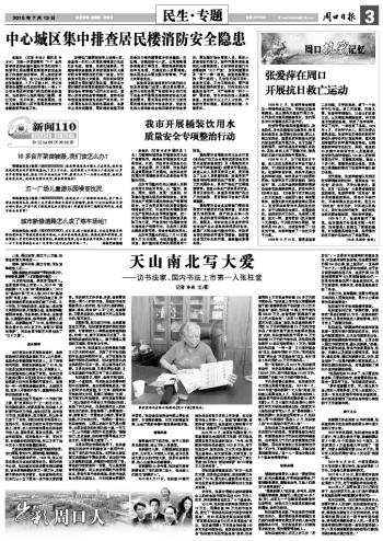 當(dāng)記者在北京見到張柱堂時,他的容貌和記者的想象差別不大。從外表看,他就是位普通而慈祥的老人,見了誰都笑呵呵的,即便在新疆生活了50年,張口還是地道流利的家鄉(xiāng)話。見到家鄉(xiāng)人,張柱堂激動的心情溢于言表,他拿出自己做的《周口日報》剪貼本讓我們翻閱,談起家鄉(xiāng)近年來取得的可喜變化,他都能一件一件清晰準(zhǔn)確地道來。此刻我方知,在老人平靜的外表下,蘊藏著的是怎樣熾熱的家鄉(xiāng)情。