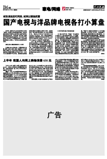 上半年 我國(guó)人均網(wǎng)上購(gòu)物消費(fèi)650元